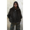 The Katarina coat by SORYA is a chocolate-colored faux fur coat with a hood, made from 100% polyester. Available in XS, SM, and ML, it combines warmth, comfort, and style.