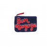 The THE JACKSONS "BON VOYAGE" Navy Beaded Purse is a refined statement accessory infused with a spirit of travel and elegance. Featuring the “BON VOYAGE” message, it combines playful typography with intricate craftsmanship.