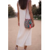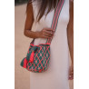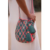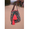 Sac Marina M Navy 100% fait main par les Wayuu pour AALUNA. Élégant, durable et unique avec pompons, franges et bandoulière ajustable.