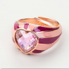 Bague chevalière en plaqué or 18 K Pierre semi précieuse rose en forme de coeur entoré d'émail dessiné à la main .